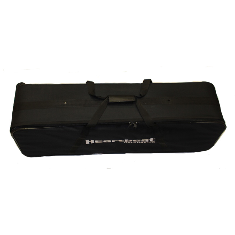 Heartbeat Hardware Bag is custom made to Heartbeat Percussion specifications. The hardware bag is 44″ long and features heavy duty zippers, reinforcing at the bottom for extra protection, wheels for making transporting easier, and black with burgandy piping and white Heartbeat embroidered logo.